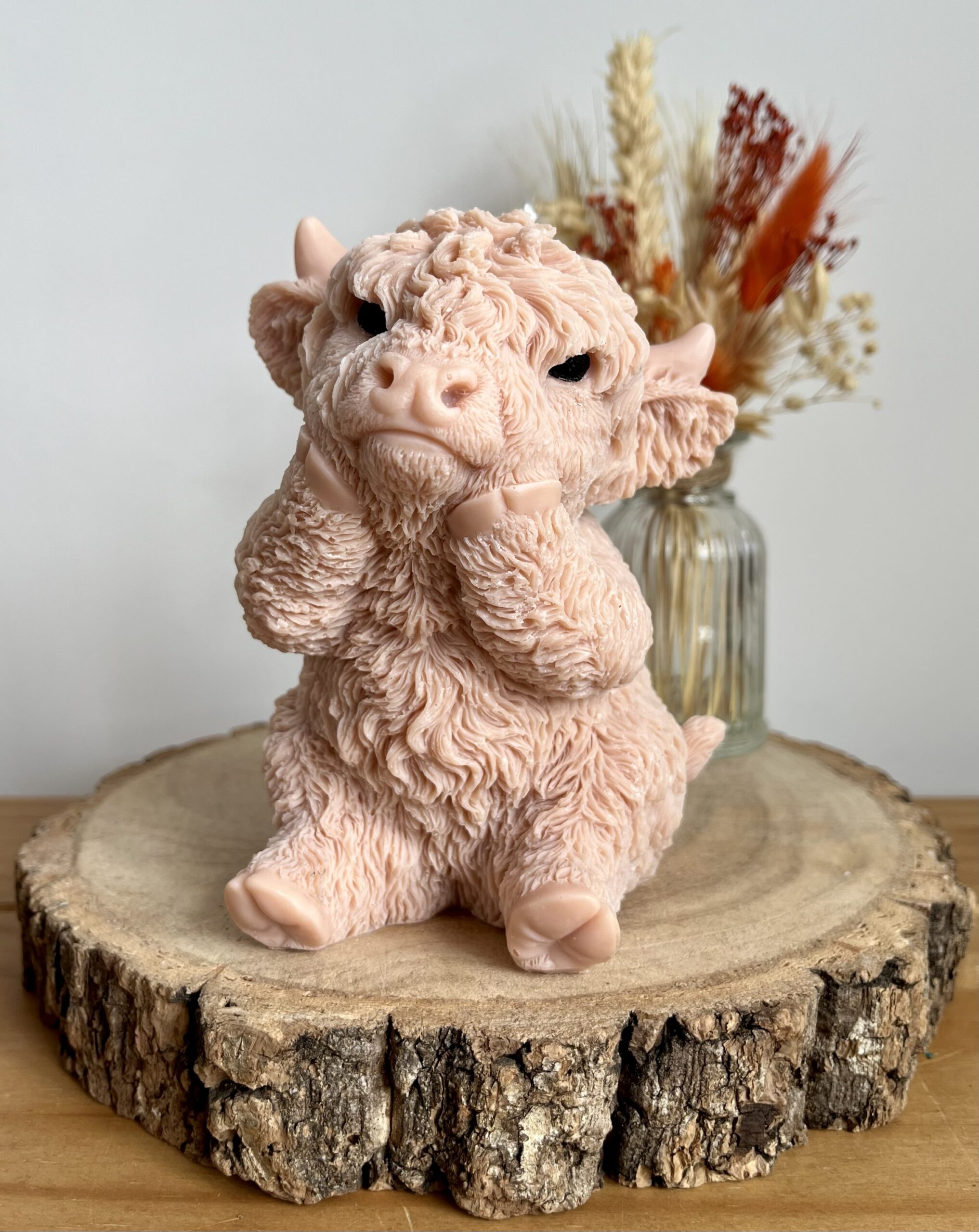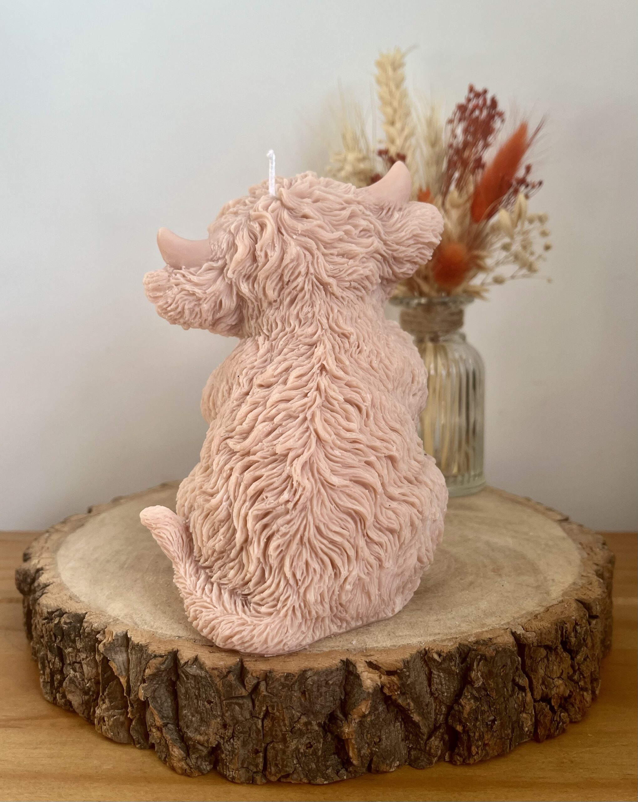 Whether placed on a shelf, coffee table, or mantelpiece, this Highland cow candle works perfectly as a statement ornament. Furthermore, it makes a lovely gift for animal lovers, country home interiors, or anyone who enjoys unique handmade décor.