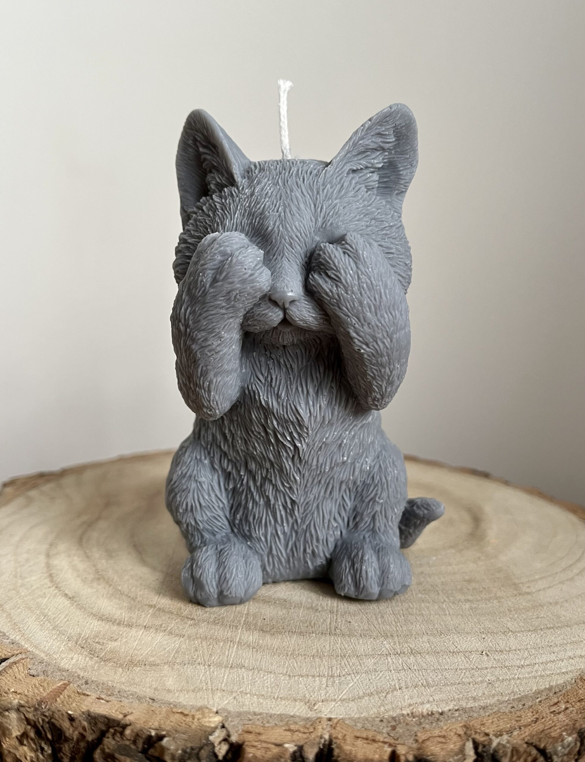 This kitten-shaped candle features an adorable peekaboo pose, with the cat covering its eyes as if mid-play. Each candle is carefully hand-poured in Wales using 100% natural soy wax and a cotton wick, creating a clean, vegan-friendly, and eco-conscious decorative piece. As a result, it works beautifully as both home décor and a thoughtful gift.